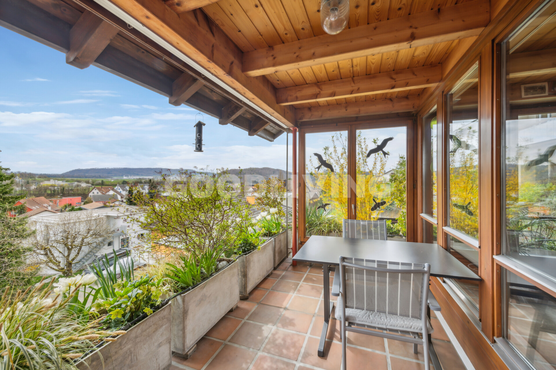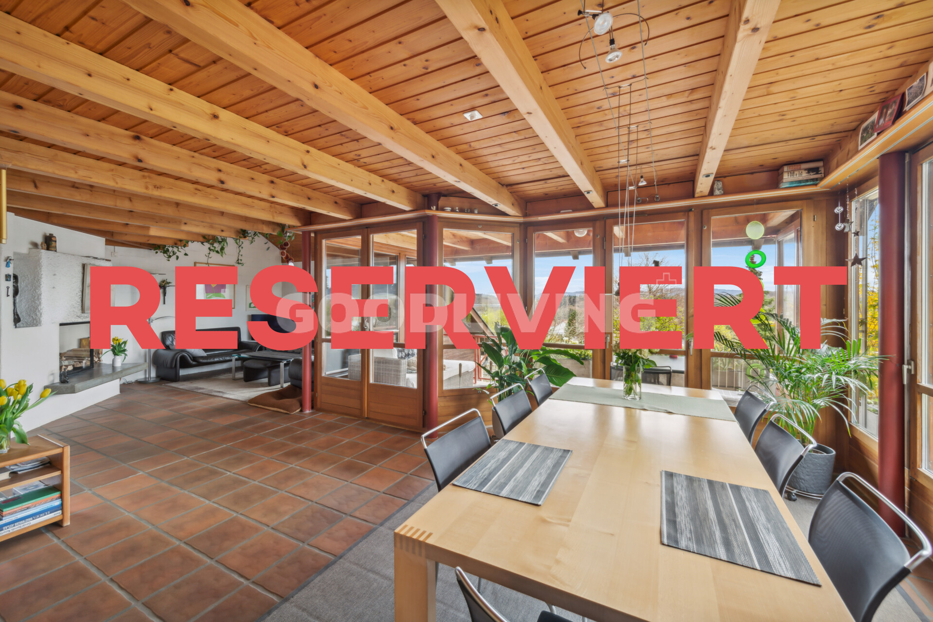 Im grossen Essbereich hat man ausreichend Platz um Gäste zu bewirten. Bei schönem Wetter lässt man sich das Essen wahrscheinlich lieber auf der Terrasse mit herrlicher Aussicht Schmeken.