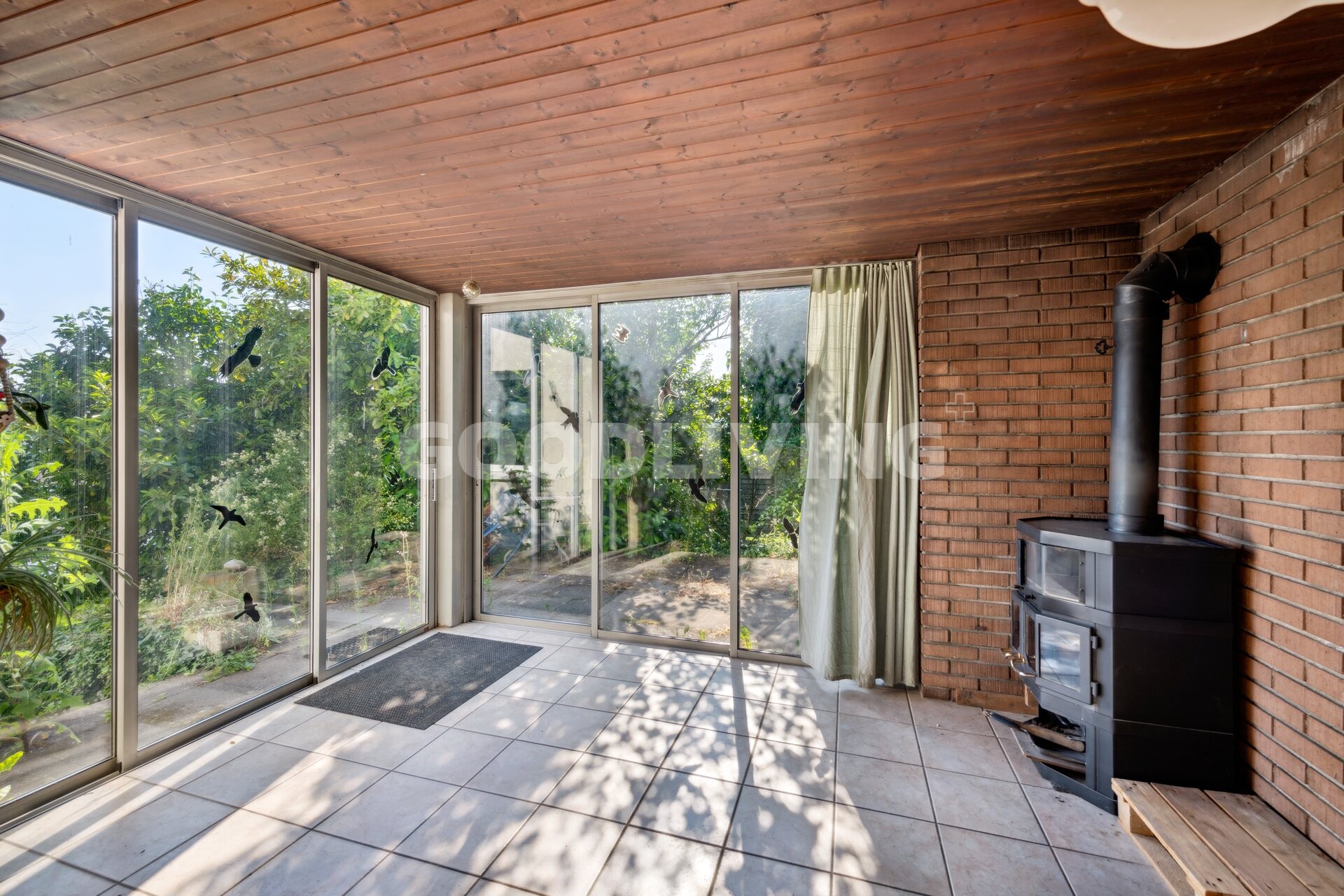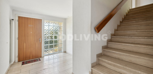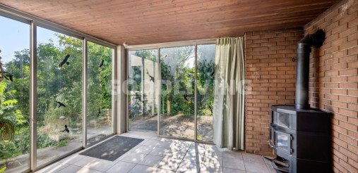 Das große und helle Erdgeschoss wird über ein breites Treppenhaus erreicht. Dort befindet sich ein fast 30 m2 großes Ess- und Wohnzimmer, über das man den Wintergarten erreichen kann. Im Wintergarten, dessen Decke eine elegante Holzverkleidung aufweist, lassen sich gemütliche Stunden am eingebauten Kamin verbringen. Die Küche ermöglicht ebenfalls den Zugang zum hellen, geräumigen Wintergarten. Darüber hinaus befinden sich auf dem Stockwerk drei helle Zimmer, von denen zwei den Zugang zum Balkon ermöglichen, der eine wunderschöne Aussicht auf die umliegende Landschaft und die umliegenden Häuser bietet.