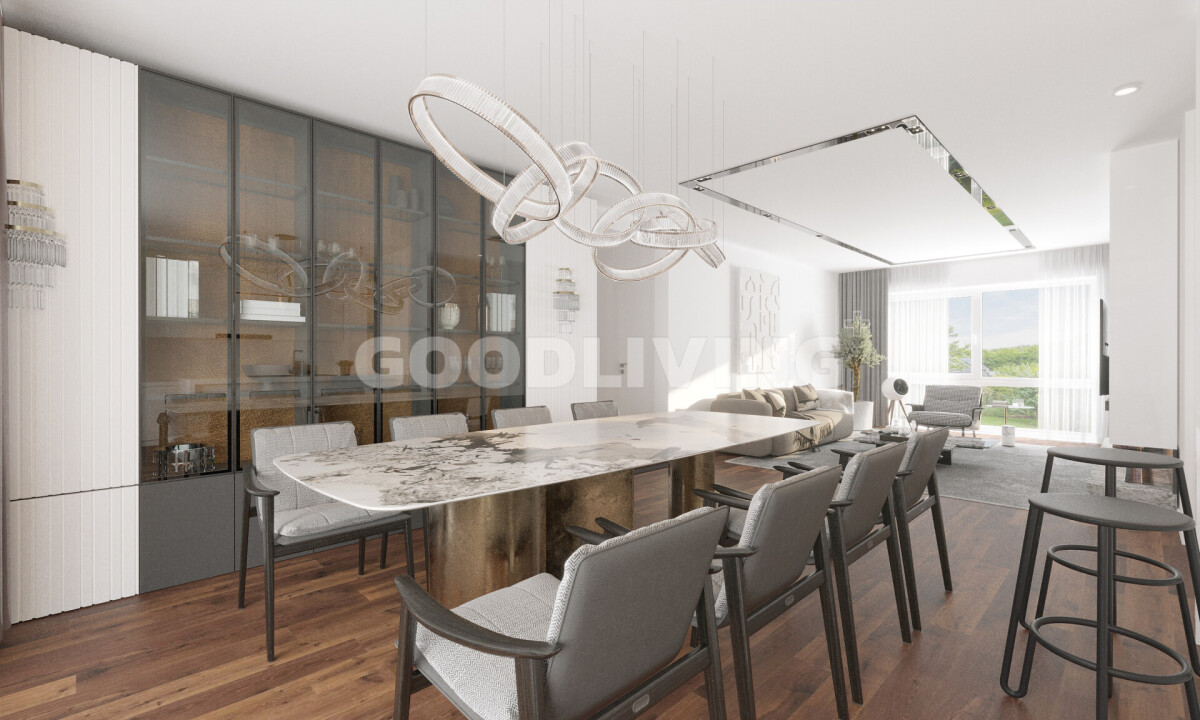 Hochwertige Materialien, grosszügige Grundrisse und lichtdurchflutete Räume schaffen ein Ambiente, das Wärme und Modernität vereint.