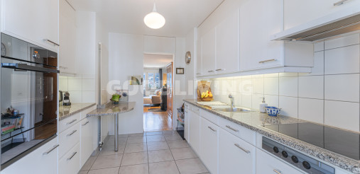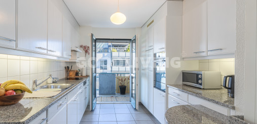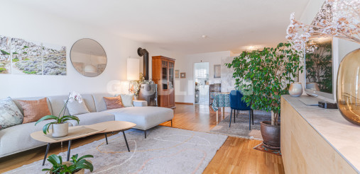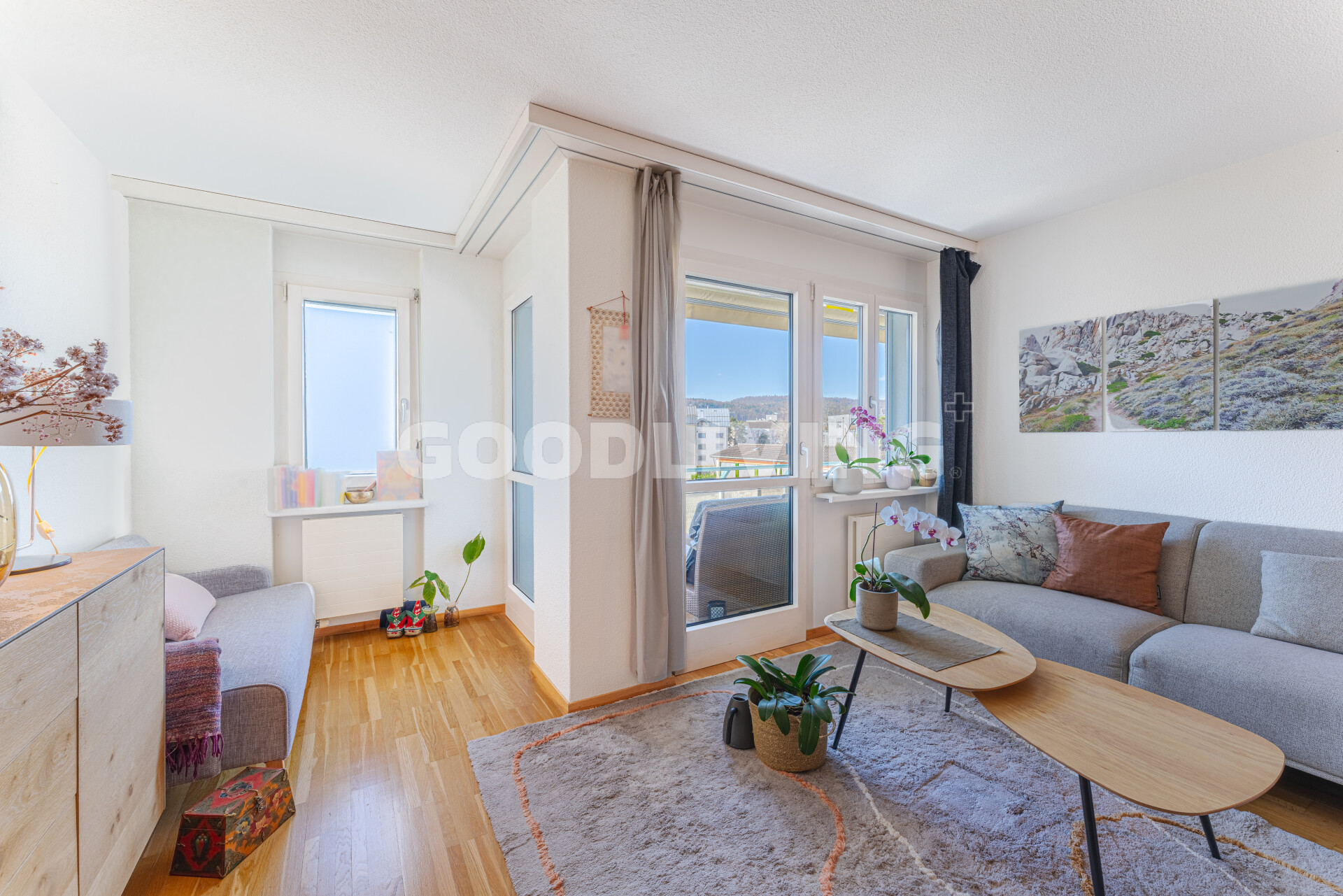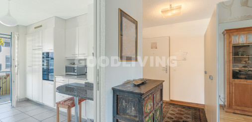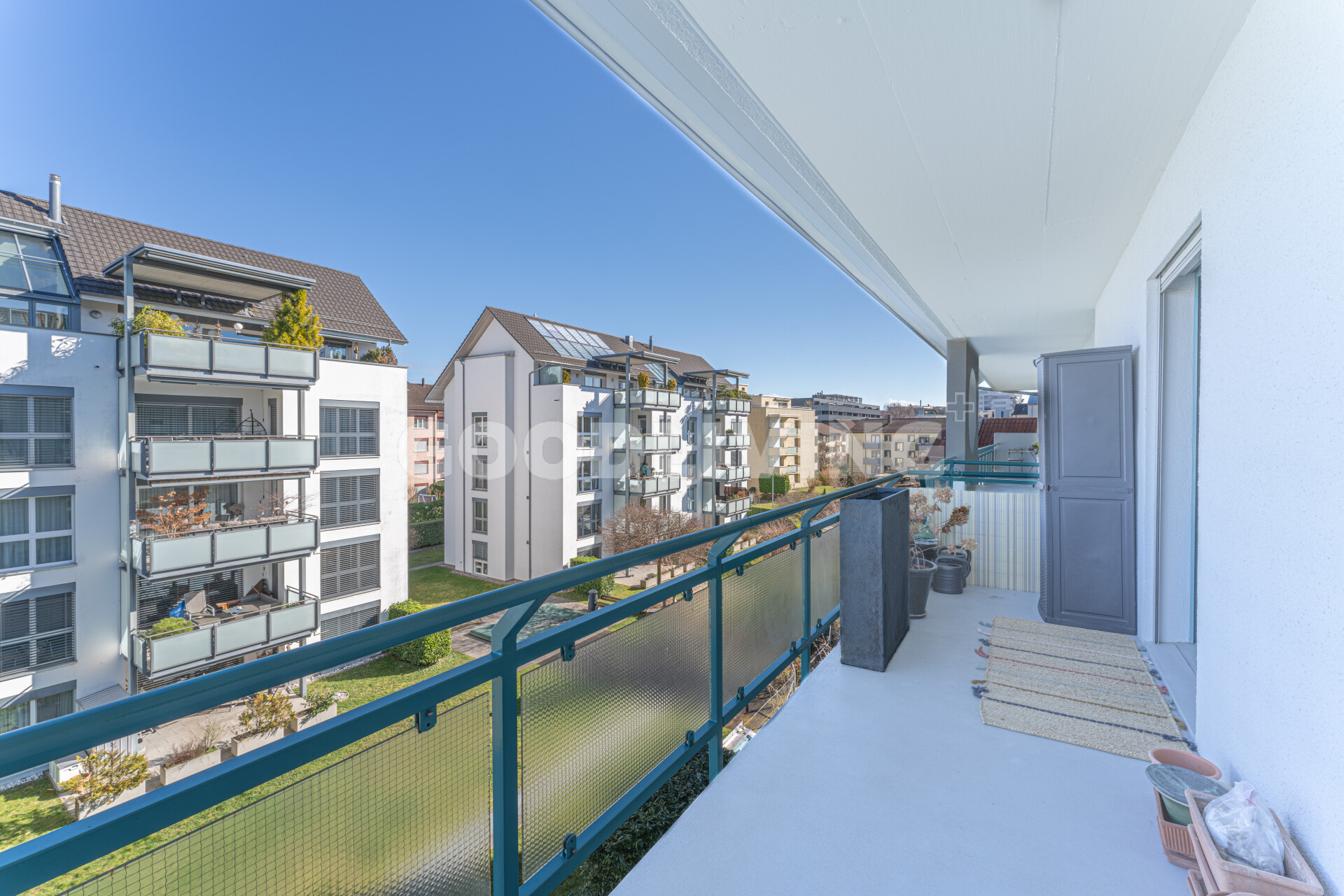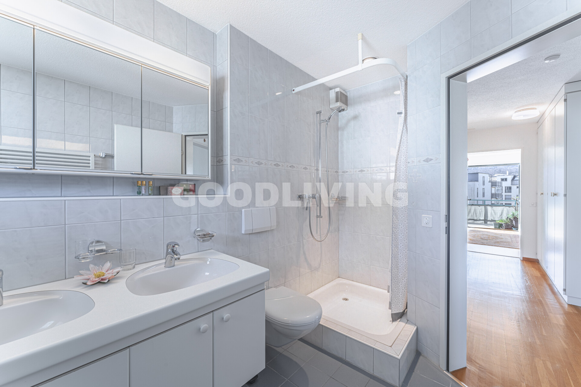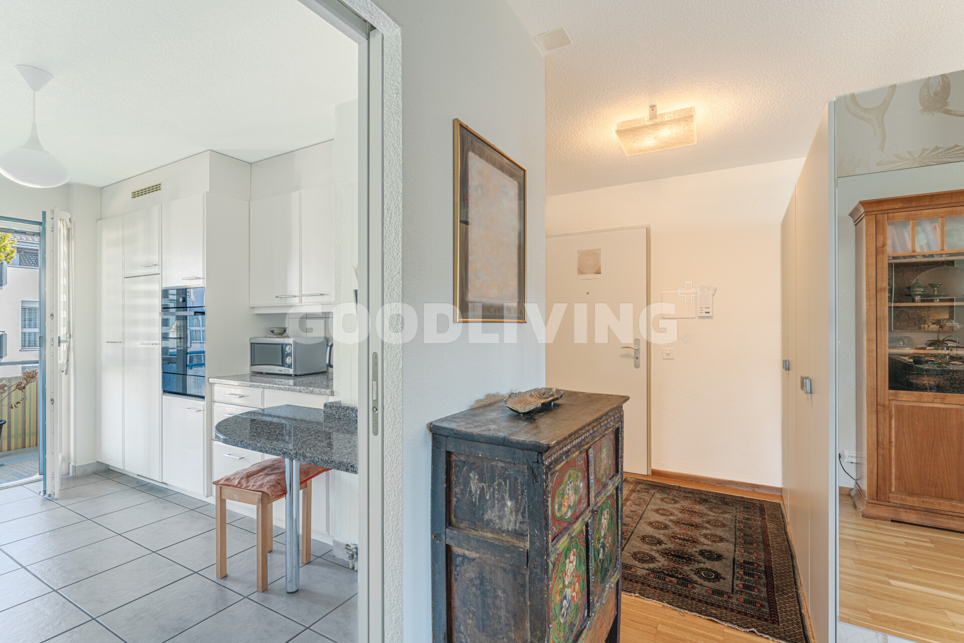 Die sonnenverwöhnte 4½ Zimmerwohnung überzeugt mit einem offenen Grundrisskonzept und profitiert von einer sehr zentrumsnahen Lage. Vom Eingangsbereich aus gelangt man in das offene Wohn- und Esszimmer mit grossen Fensterflächen (alle Holz-Metall-Fenster mit Wärme- und Schallschutz). Der Eyecatcher ist der hochwertige Schwedenofen, der für ein schönes Ambiente sorgt. Der Eichenparkettboden im Wohnzimmer, Eingang- und Korridorbereich strahlt eine wohlige Wärme aus. In den Schlafzimmern wurde ein Laminatboden (2017) und in den Nasszellen sowie in der Küche ein keramischer Plattenboden verlegt. Die praktische Küche mit Granit-Arbeitsplatten ist vollständig ausgerüstet mit einem V-Zug Kombisteamer (2016), Electrolux Glaskeramik Kochfeld (2016), Electrolux Kühlschrank (2013) mit integriertem Tiefkühlfach, Geschirrspüler (2014) und neuem Electrolux Dampfabzug (2024). Der östlich ausgerichtete Balkon ist von der Küche und der westlich ausgerichteter Balkon ist über das Wohn und Schlafzimmer 3 aus begehbar. Grosszügige Einbauschränke befinden sich im Korridor.