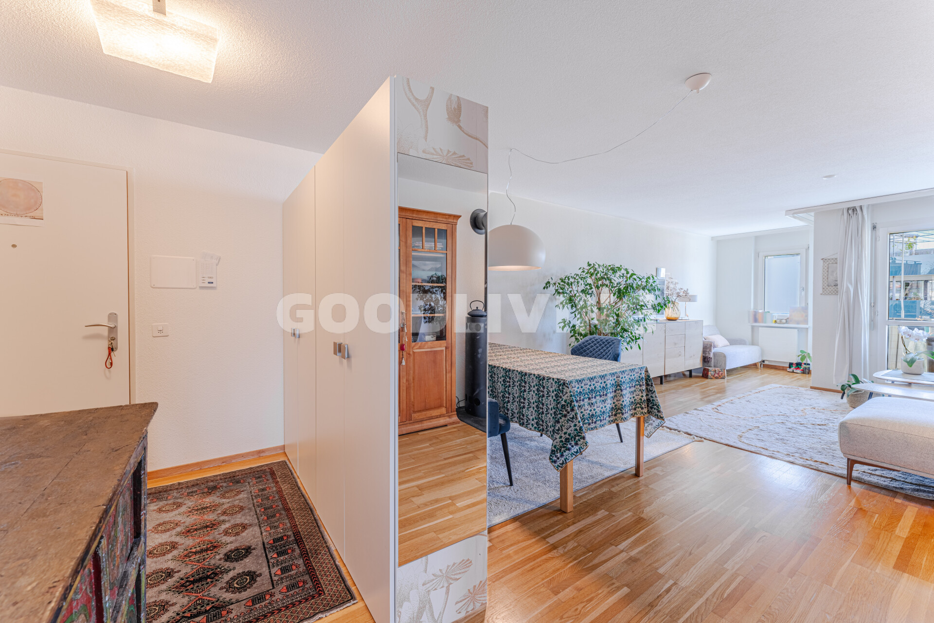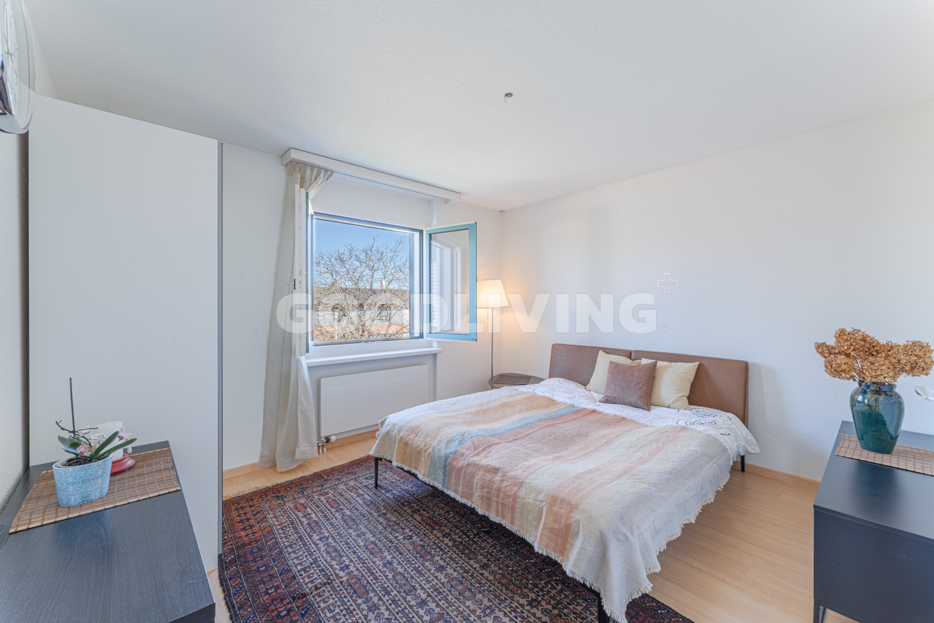 Die grosszügige Wohnung besticht durch ein offenes Grundrisskonzept und befindet sich in einem gepflegten Zustand. Die grossen Fensterflächen versorgen die Räumlichkeiten mit viel Tageslicht und tragen zur wohnlichen Lebensqualität bei. Dies kommt besonders im zweiten Zimmer mit Erker zur Geltung und schafft dort eine unverwechselbare sowie persönliche Note. Des weiteren bietet die wunderschöne Wohnung mit 108 m² im dritten Obergeschoss viel Privatsphäre und einen westlich sowie auch einen östlich ausgerichteter Balkon, auf welchen man am Abend gemütlich den Tag ausklingen zu lassen.