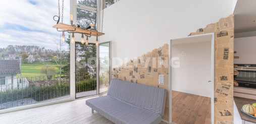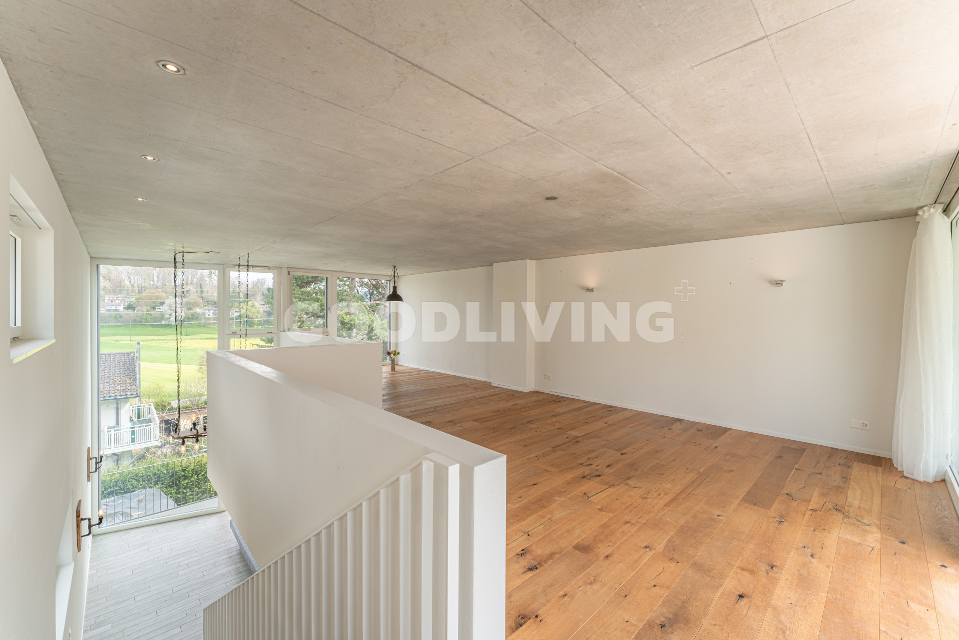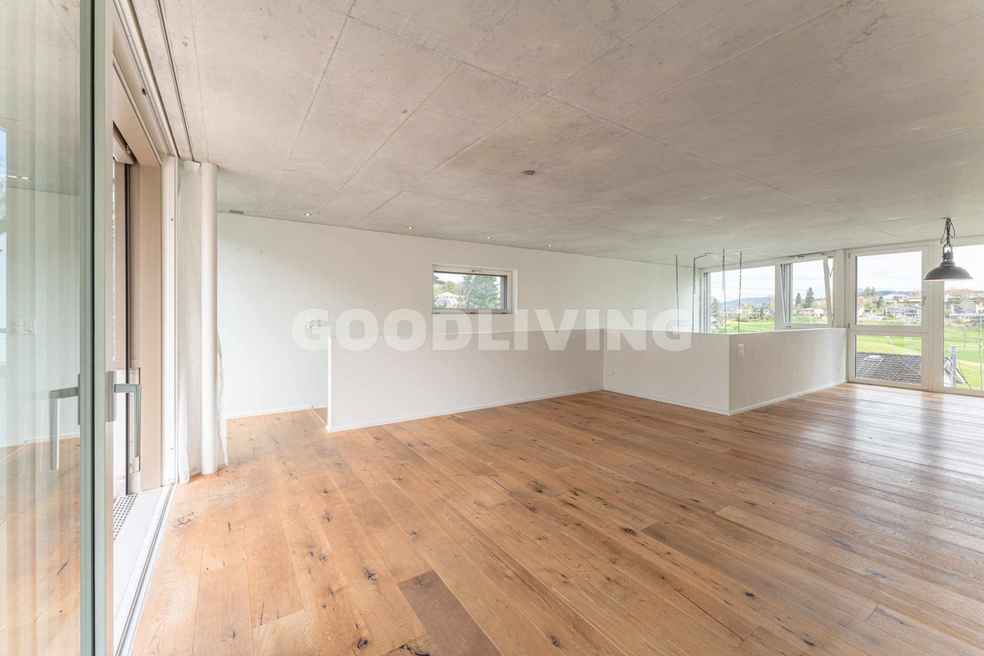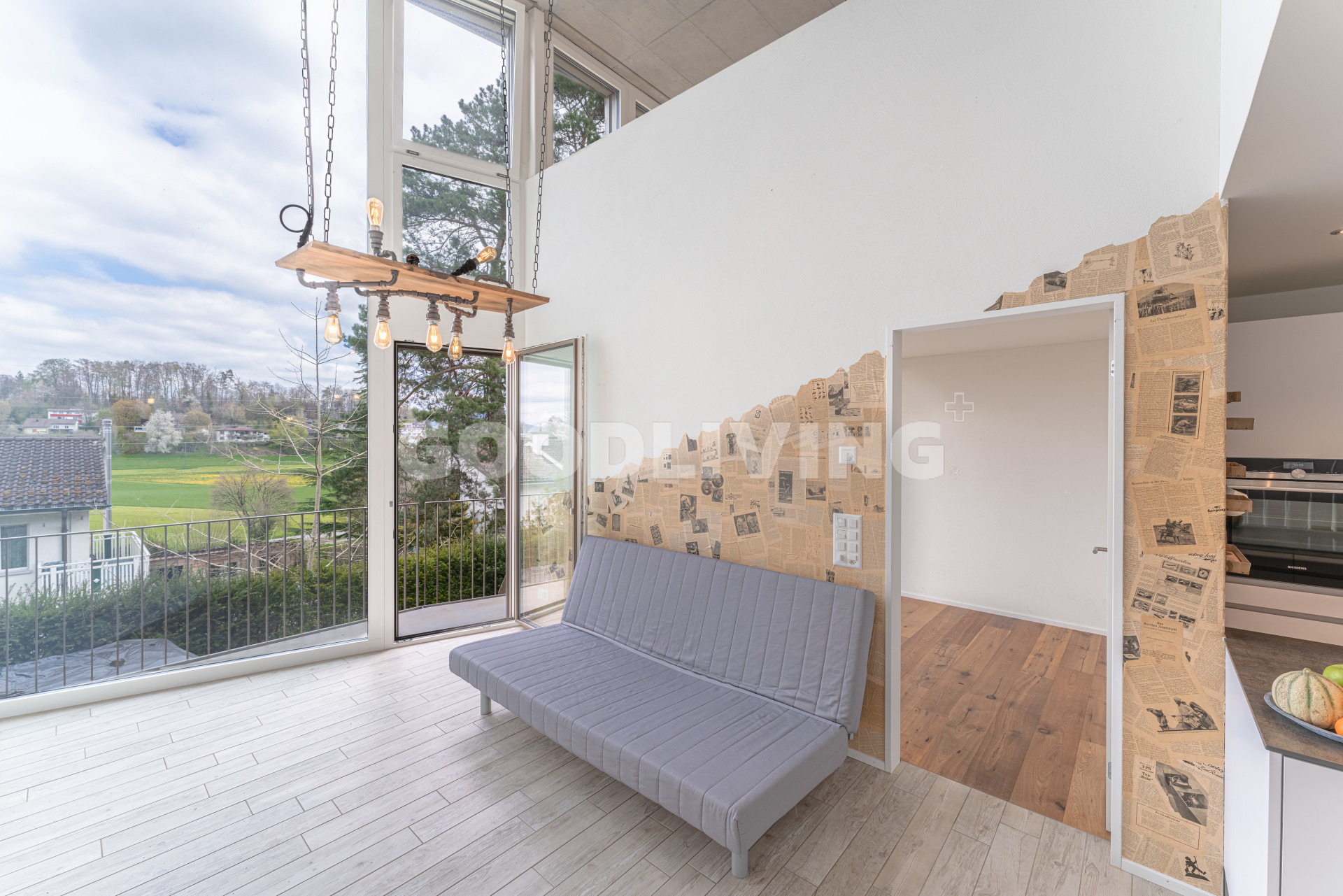 Im Obergeschoss befindet sich der grosse und offene Wohnbereich mit einem südwestlich ausgerichteten Balkon (13.2m²).