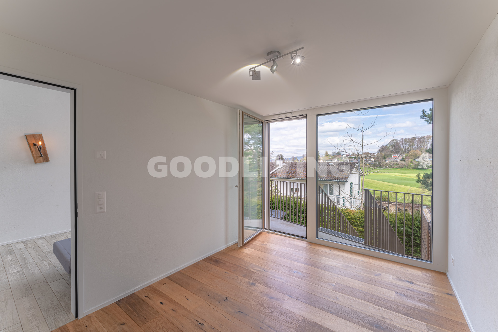 Top modernes und familienfreundliches 4½ Zimmer Reiheneckhaus an bevorzugter sowie ruhiger Lage, sucht eine Familie oder Paar mit grossem Platzanspruch. Das exklusive 4½ (5½) Zimmer Reihenhaus mit modernem Ausbau und offener Küche überzeugt mit einem hochwertigen Ausbaustandard und befindet sich in einem neuwertigen und gepflegtem Zustand. Die ganzflächige Fensterfront mit einer Gesamthöhe von 5.20m wirken sehr imposant, bieten einen wunderbaren Weitblick über das Feld Richtung Wetzikon und sorgen in den Räumen für viel natürliches Tageslicht. Der grosse und offener Wohnbereich im Obergeschoss wird ebenfalls durch die raumhohen Fenster hell erleuchtet.