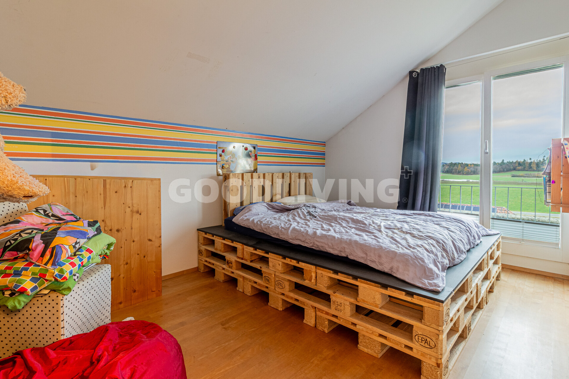 Mit vier Schlafzimmern, darunter ein Zimmer mit begehbarem Kleiderschrank, sowie zwei stilvollen Badezimmern (Dusche/WC und Whirlpool/Dusche/WC) bietet das Haus sehr viel Platz für Familienbedürfnisse.