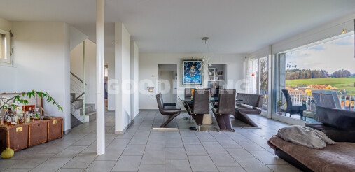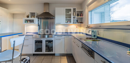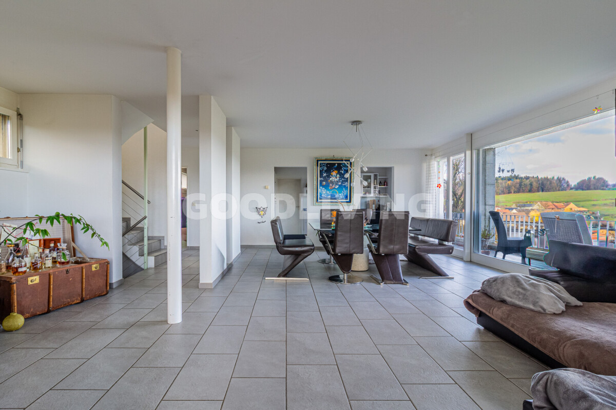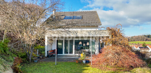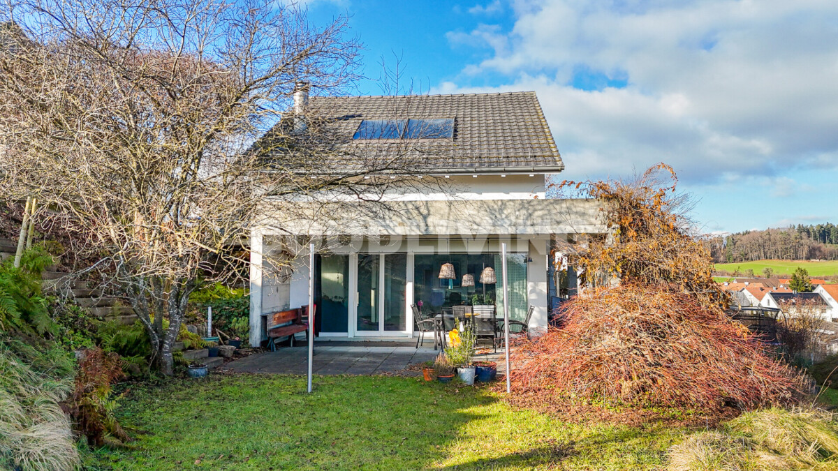Dieses moderne 6.5-Zimmer-Einfamilienhaus (freistehend) begeistert mit lichtdurchfluteten Räumen, hoher Wohnqualität und einer unverbaubaren Panorama-Aussicht, die jeden Tag besonders macht.