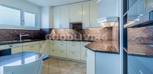 An erhöhter, sonniger Lage in Herrliberg präsentiert sich diese elegante 4.5-Zimmer-Eigentumswohnung mit herrlichem Ausblick über das gepflegte Wohnquartier bis hin zum Rigi.