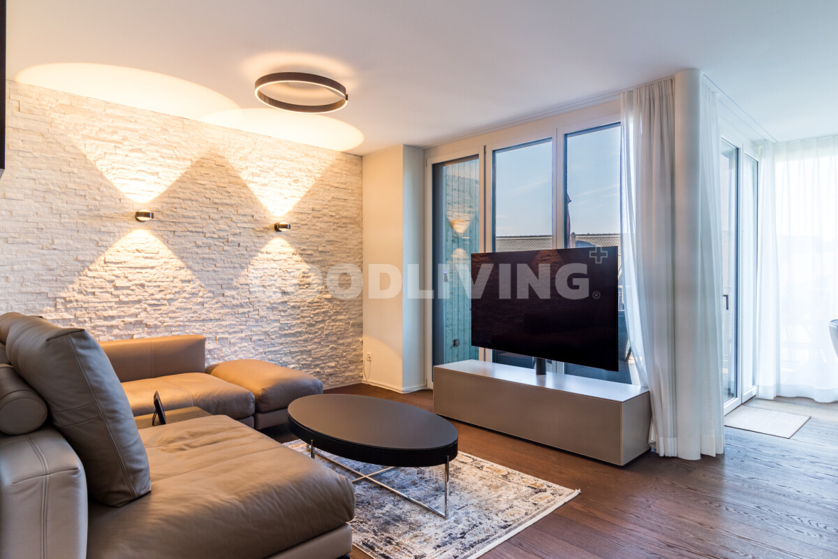 In erhöhter Lage von Hirzel entsteht ein Wohngefühl, das Weite, Architektur und Privatsphäre in Einklang bringt. Diese 5.5-Zimmer-Maisonette entfaltet sich über zwei Ebenen und verbindet modernes Design mit natürlichem Licht und klarer Linienführung.