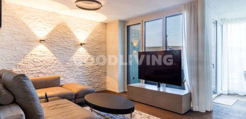 Warme Holzböden, fein abgestimmte Oberflächen und die ruhige Architektur verleihen der Wohnung eine klare, moderne Eleganz. Baujahr 2024, neuwertig und bereit für einen neuen Lebensabschnitt.