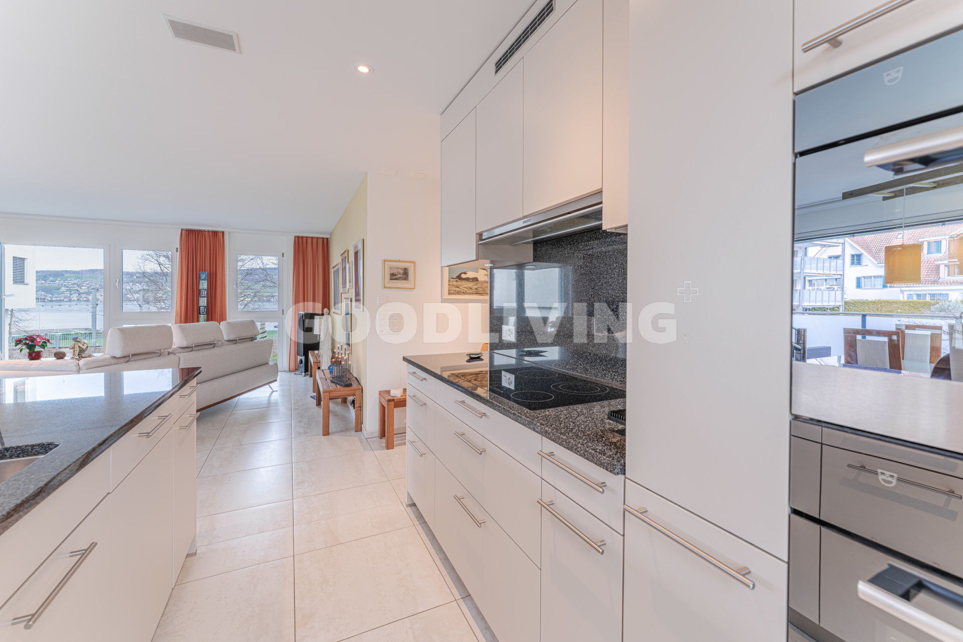 Elegante und moderne 3½ Zimmer Wohnung an zentrumsnaher Lage mit direkter Seesicht für Singels, Paare oder kleinere Familien. Die stilvolle 3½ Zimmer Wohnung mit schönem Ausbau und offener Küche überzeugt mit einem hochwertigen Ausbaustandard, einer kontrollierten Wohnraumlüftung und befindet sich in einem neuwertigen Zustand. Alle Räume sind bodenbeheizt und können einzeln reguliert werden. Ebenfalls sind sämtliche Lamellenstoren sowie die Markise elektrisch regulierbar und tragen zur wohnlichen Lebensqualität bei.