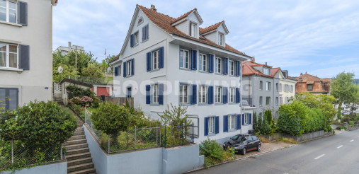 «Sind Sie auf der Suche nach einem wertbeständigen und geschichtsträchtigen Anlageobjekt? Ist Ihnen eine gute Lage mit Seeblick für die Vermietbarkeit der Wohneinheiten auch in Zukunft wichtig? Dann wird Sie dieses Vierfamilienhaus mit Pergola und grossem Sitzplatz überzeugen.»