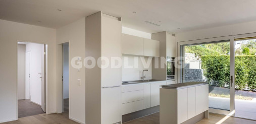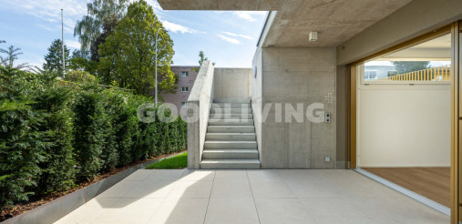 Die elegante und top moderne 2½ Zimmer Wohnung überzeugt mit einem offenen Grundrisskonzept sowie den grosszügigen Schiebefenstern, welche den Aussenbereich mit dem Wohn- und Esszimmer praktisch verschmelzen lassen. Sie befindet sich im Erdgeschoss, ist über den rollstuhlgängigen Lift oder über das Treppenhaus ganz bequem erreichbar und profitiert von einer verkehrstechnisch optimalen Lage.