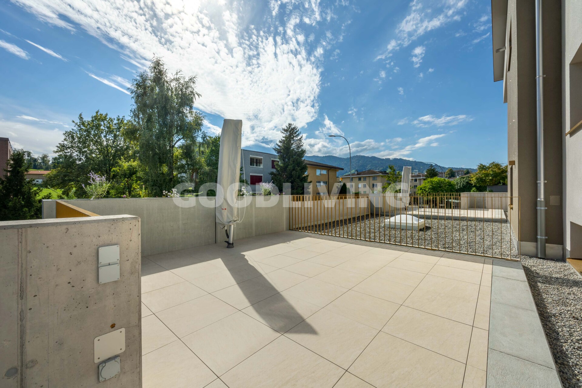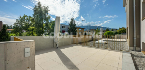 «Sind Sie auf der Suche nach einer charmanten Wohnung mit Weitsicht bis zu den Bergen und einem hochwertigen Ausbaustandard? Möchten Sie Ihre zukünftige Wohnung mit kontrollierter Wohnraumlüftung Ihr Eigen nennen können? Schätzen Sie es, tagsüber oder am Abend auf dem grossen- oder dem gedeckten Sitzplatz gemütliche Stunden zu verbringen? Dann wird Sie diese elegante 2½ Zimmer Wohnung überzeugen.»