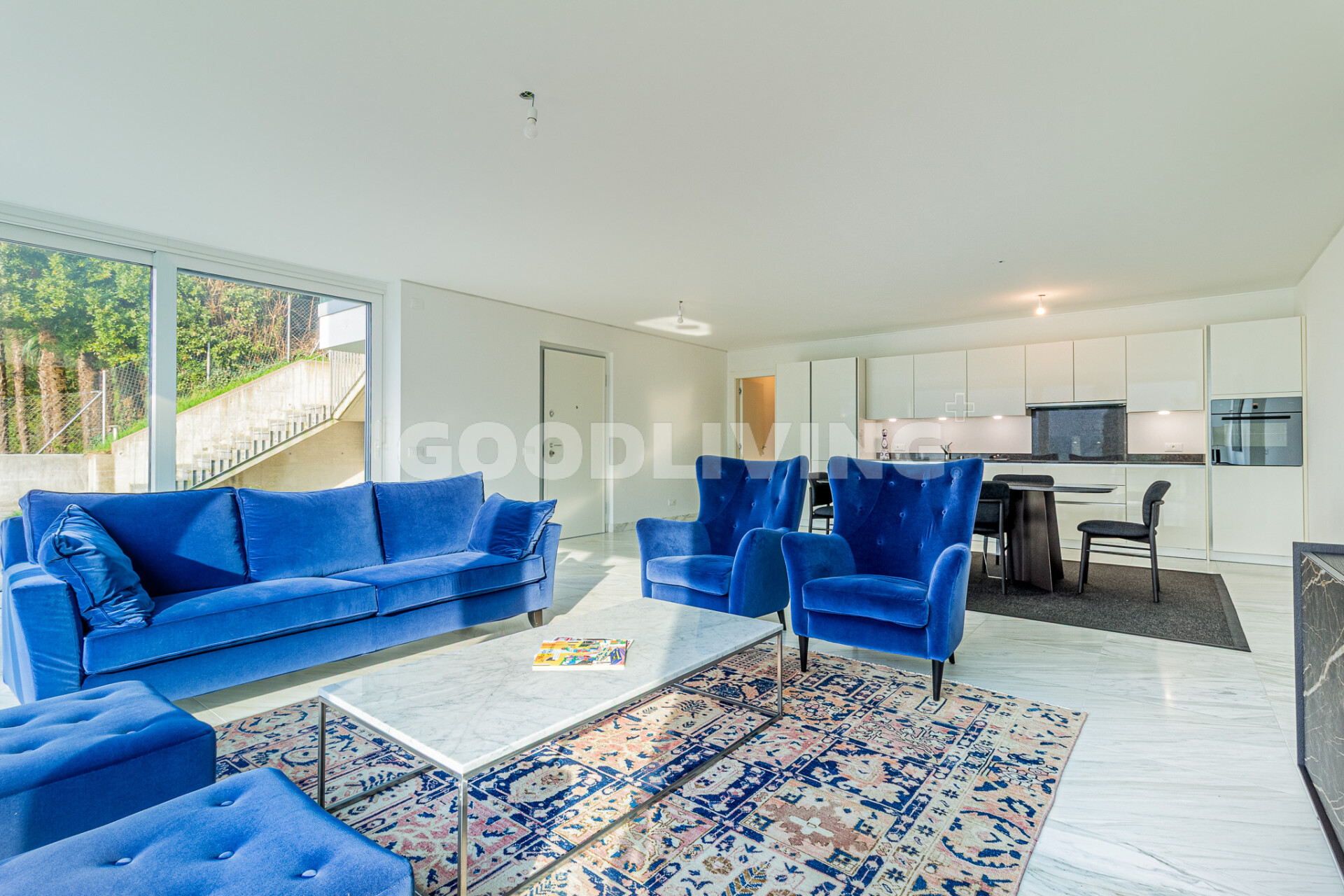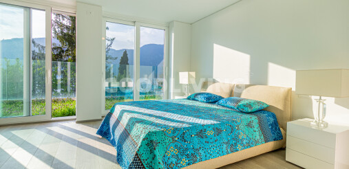 La pianta aperta offre ampio spazio per soluzioni abitative personalizzate, mentre materiali pregiati come il marmo e il parquet in legno massiccio creano un’atmosfera abitativa di grande stile e senza tempo. La cucina moderna con elettrodomestici di alta qualità si integra perfettamente nella zona giorno/pranzo. Le ampie vetrate a tutta altezza garantiscono luce naturale durante tutto il giorno e regalano una vista libera e incantevole sul lago – pura qualità di vita.