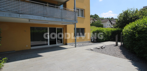 - grosse Gartenterrasse von 100m2 (davon 80m2 Bodenplatten, 20m2 Kieselsteine)