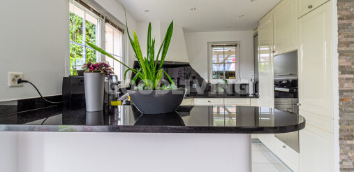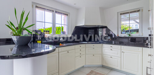 + Stilvolle, zeitlose Küche mit Granitabdeckung und hellen Fronten