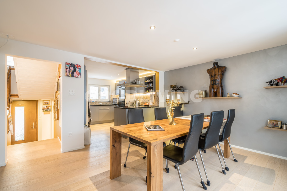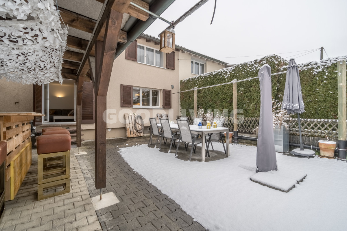 Das Haus punktet klar mit einem grossen Garten, welcher mit einem gedeckten Pergola und einem offenen Sitzplatz ausgestattet ist. Zudem profitiert man von einem modernen Ausbaustandard, welche im 2014 für über CHF 440'000.- saniert/ umgebaut worden ist. Parkieren kann man das Fahrzeug in der Garagenbox oder vor dem Haus (Platz für bis zu vier Fahrzeuge). Ausserdem wird das Haus mit einer modernen Luft-Wärmepumpe beheizt. Die Heizkosten belaufen sich auf etwa Fr. 200.- pro Monat.