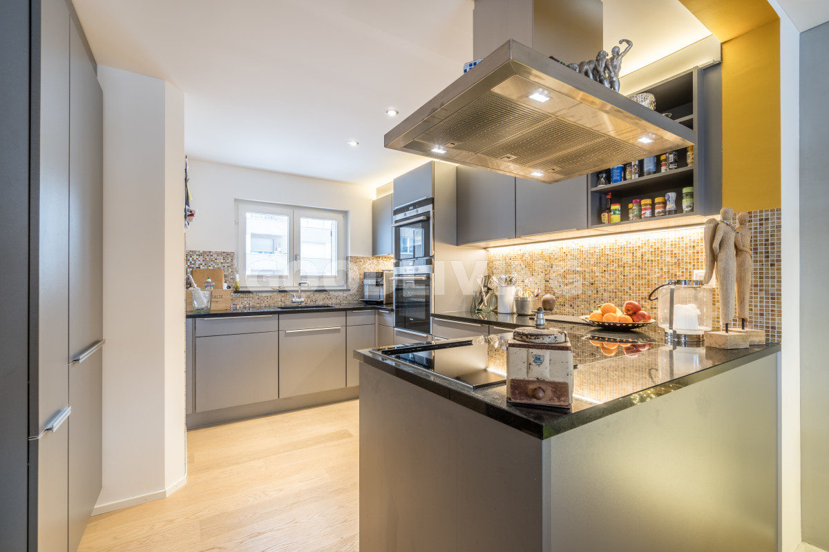 und einem Umluft/Kombi-Steamer ausgestattet worden. Das Bürozimmer befindet sich ebenfalls im Erdgeschoss.
