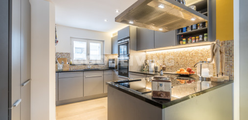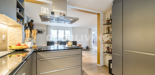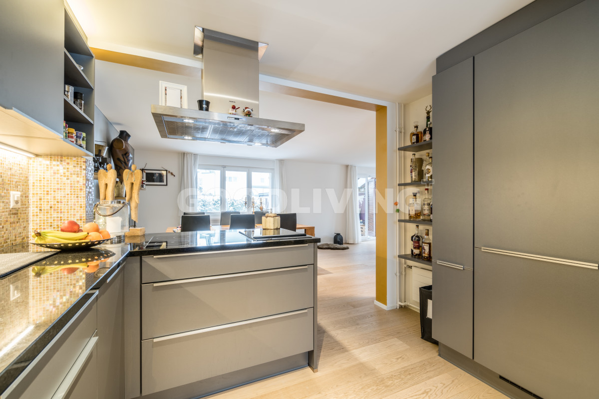 Diese charmante 4½ Zimmer Haushälfte an zentrumsnaher Lage umgeben von viel Grün überzeugt mit modernen Räumen und einem grossen südwestlich ausgerichteten Garten, welcher mit einem Sitzplatz und einer gedeckten Pergola ausgestattet ist. Vom Eingangsbereich aus gelangt man über die Treppe in das grosse und offene Wohn / Esszimmer mit direktem Zugang zum grossen Garten. Dabei fällt der wunderschöne Landhausdiele Eichenparkettboden, welcher ausser in der Nasszelle im ganzen Haus im 2014 verlegt wurde sofort auf. Die moderne Küche verfügt über grosse Granitarbeitsplatten und ist zusätzlich mit einer Teppan Yakikochfeld,