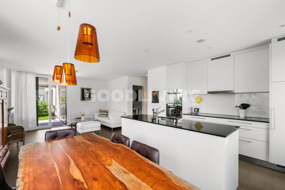 Die offene Küche mit Kochinsel bietet die perfekten Voraussetzungen um ihre Liebsten so richtig zu verwöhnen. Der Bereich neben der Kochinsel bietet genügend Platz um einen grossen Tisch aufzustellen an welchem sich Familie und Freunde gerne versammeln.