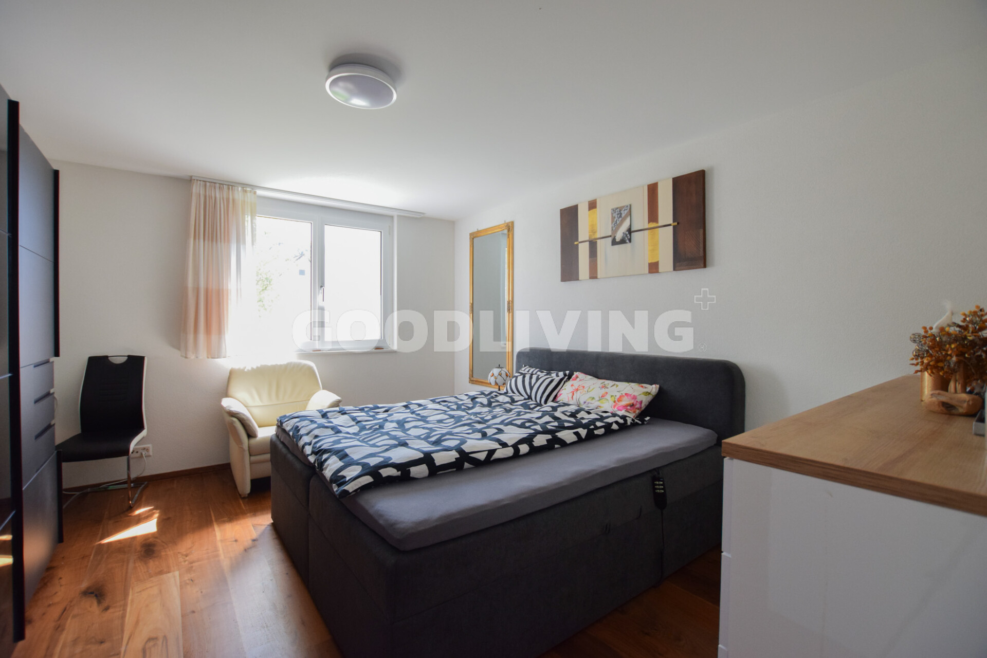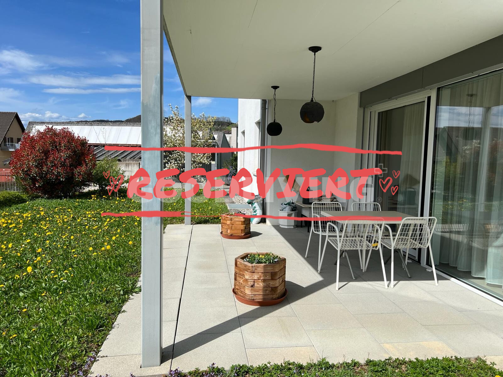 Die Wohnung ist nach Osten, Süden und Westen ausgerichtet und dank grosser Fensterfronten lichtdurchflutet. Der gedeckte Gartensitzplatz bietet Privatsphäre und lädt zum Entspannen ein.