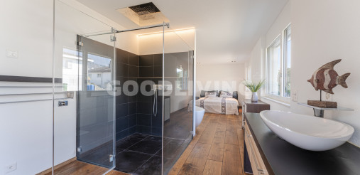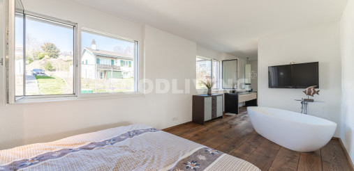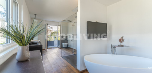 Das Vierfamilienhaus mit rollstuhlgängigem Lift profitiert von einer idyllischen Lage, ist in drei Etagen aufgeteilt und wurde im Jahre 2013 erbaut. Zudem bietet die exklusive Attikawohnung mit ganztags besonnter Dachterrasse viel Privatsphäre, ein grosses Zimmer, welches mit einem freistehenden Bad und einer separaten grossen sowie erstklassigen Regendusche ausgestattet ist. Alle Armaturen stammen aus dem Hause Axor Massaud, welches für Harmonie und zeitloses Design steht. Der geräumige und einzeln abschliessbare Keller (22m²), der Veloraum sowie die zwei grossen Einstellhallenplätze (34.5m²) befinden sich im Erdgeschoss. Letztere befinden sich im Eingangsbereich und sind bequem über das Treppenhaus oder mit dem Lift erreichbar.