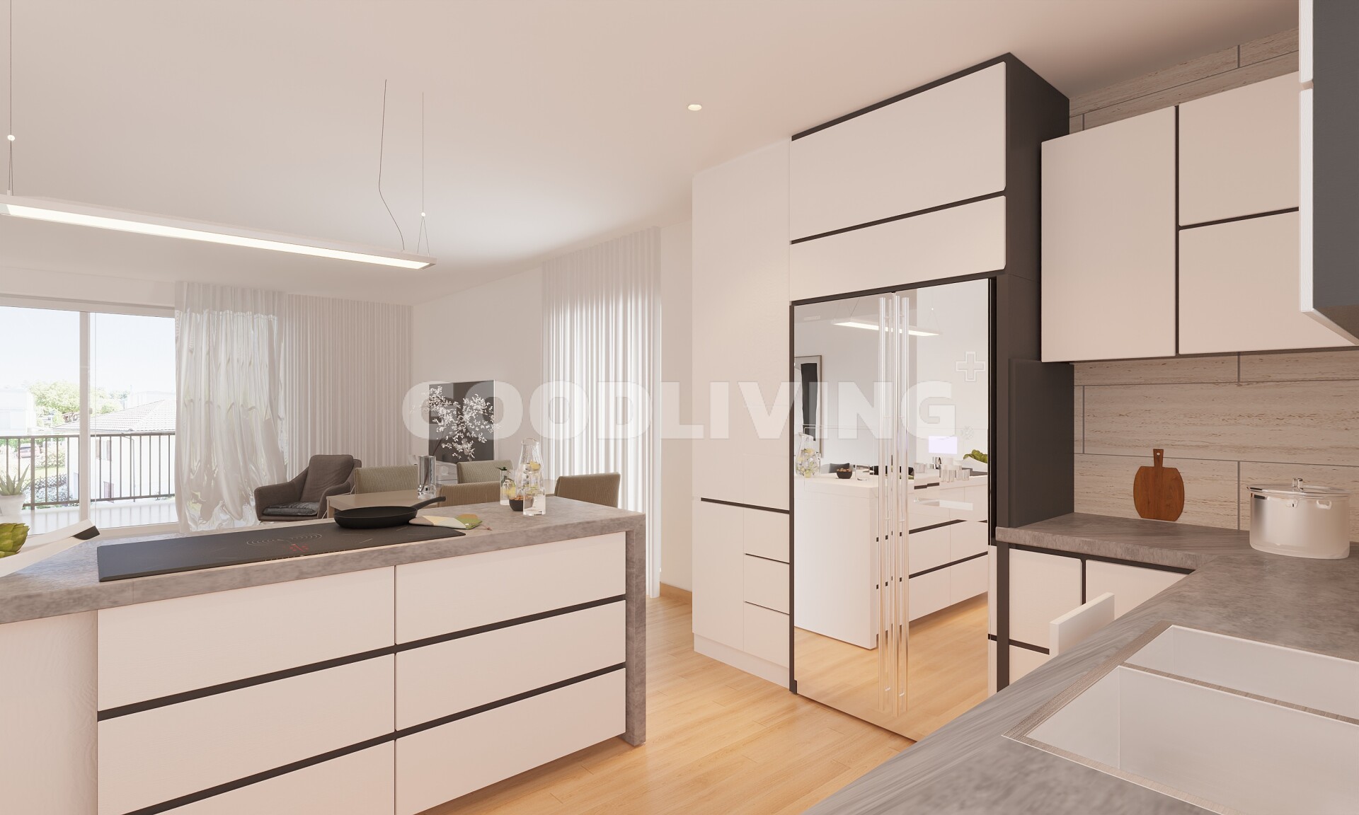 Der lichtdurchflutete Wohn- und Essbereich fügt sich harmonisch an die offene, elegante Küche an und schafft ein angenehmes Raumgefühl. Grosse Fensterfronten sorgen für ein freundliches Ambiente und viel Tageslicht. Dank Erdsonde und PVT-Anlage profitieren Sie von einem nachhaltigen, energieeffizienten Wohnstandard.
