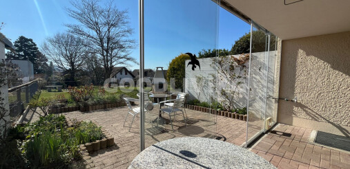 Ein besonderes Highlight ist der weitläufige, gepflegte Garten mit rund 168 m² Fläche sowie der Balkon im Obergeschoss mit schönem Bergpanorama. Ergänzt wird das Angebot durch grosszügige Kellerräume inklusive Weinkeller und Luftschutzraum.