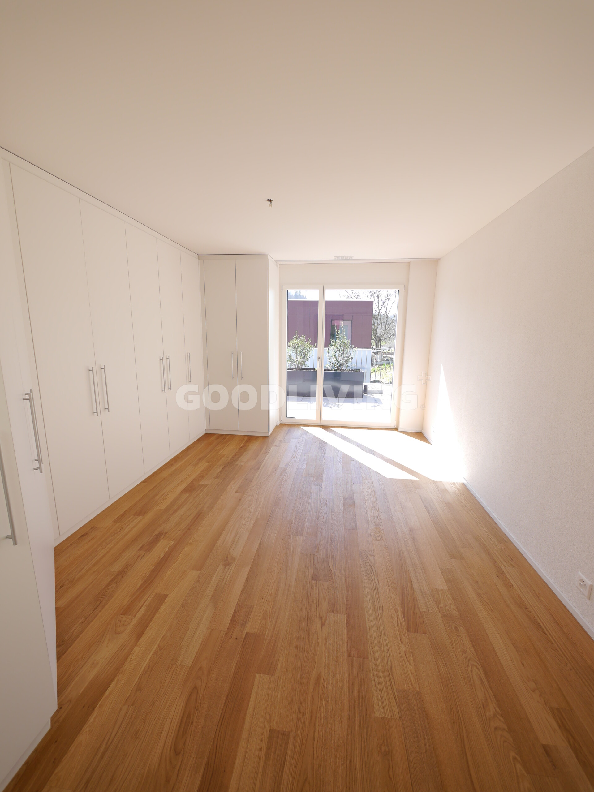 -lichtdurchflutete Zimmer mit Parkettböden