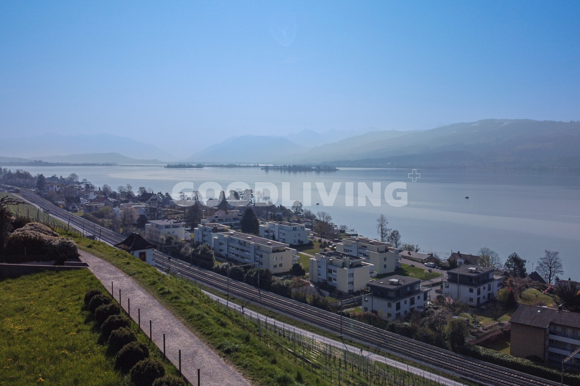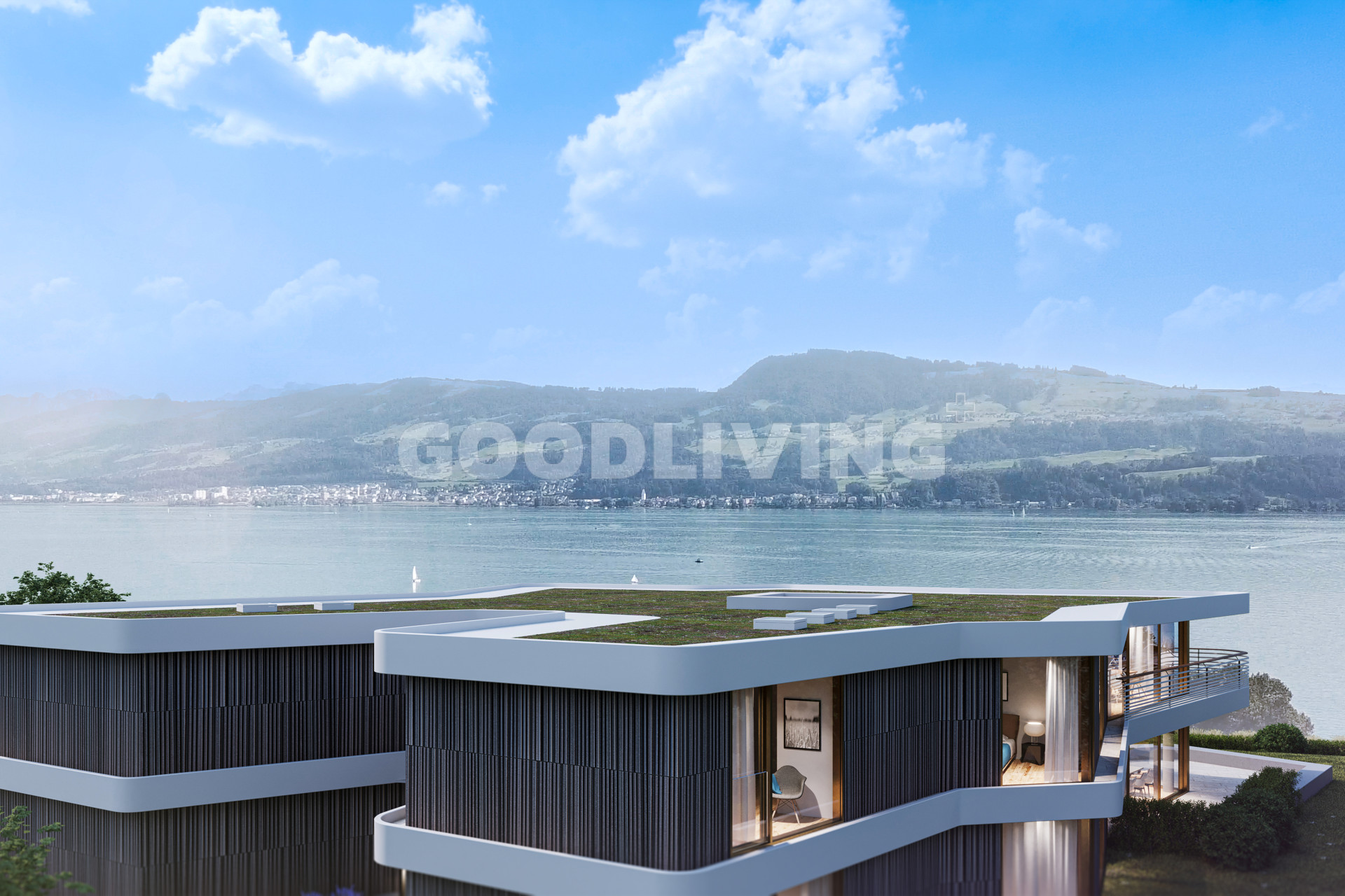 «Sichern Sie sich schon heute Ihre erstklassige Traumwohnung an sonniger Toplage umgeben von viel Grün, Panoramasicht auf den Zürichsee sowie in die Alpen»