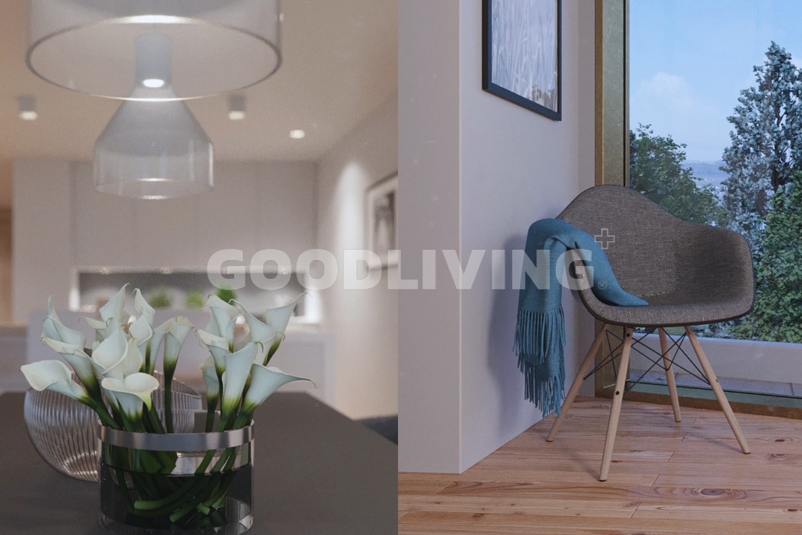 Die Wohnräume verfügen alle über grosszügige und moderne Grundrisse, eine gehobene Ausstattung mit hochwertigen Materialien sowie raumhohe Fenster. Die moderne Architektur kombiniert mit einer edlen Metallfassade und den grossen Terrassen ergeben ein stimmiges Gesamtbild.