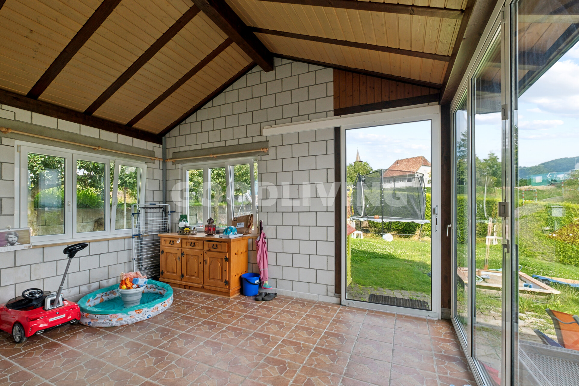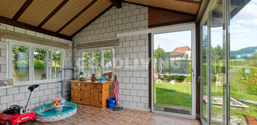 Zum Verkauf steht ein charmantes Einfamilienhaus, das durch seinen hochwertigen Keramikboden im Wohnzimmer sofort begeistert. In den Schlafzimmern sorgt edler Parkettboden für ein warmes und gemütliches Ambiente. Der direkte Zugang vom Haus zur Garage bietet zusätzlichen Komfort im Alltag. Ein lichtdurchfluteter Wintergarten lädt ganzjährig zum Verweilen ein. Der große Garten mit gepflegtem Rasen und alten Obstbäumen ist ein echtes Highlight für Naturliebhaber. Dank der energieeffizienten Wärmepumpe profitieren Sie von niedrigen Betriebskosten und nachhaltigem Wohnen. Die ruhige Lage und die durchdachte Raumaufteilung machen dieses Haus ideal für Paare oder Familien. Überzeugen Sie sich selbst von dieser attraktiven Immobilie mit viel Potenzial zum Wohlfühlen!