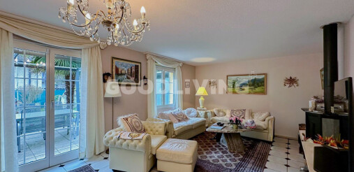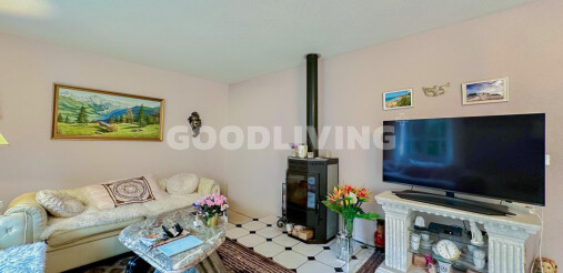Im Inneren empfängt Sie ein heller Eingangsbereich mit direktem Zugang zu einem modernen Badezimmer mit Dusche, einem vielseitig nutzbaren Zimmer sowie zur stilvollen und gut ausgestatteten Küche. Der grosszügige Wohn und Essbereich mit Kamin bildet das Herzstück des Hauses. Viel Licht, warme Materialien und der Blick ins Grüne schaffen eine behagliche Atmosphäre. Von hier aus gelangen Sie direkt auf den Gartensitzplatz, wo Innen und Aussenraum harmonisch ineinander übergehen.