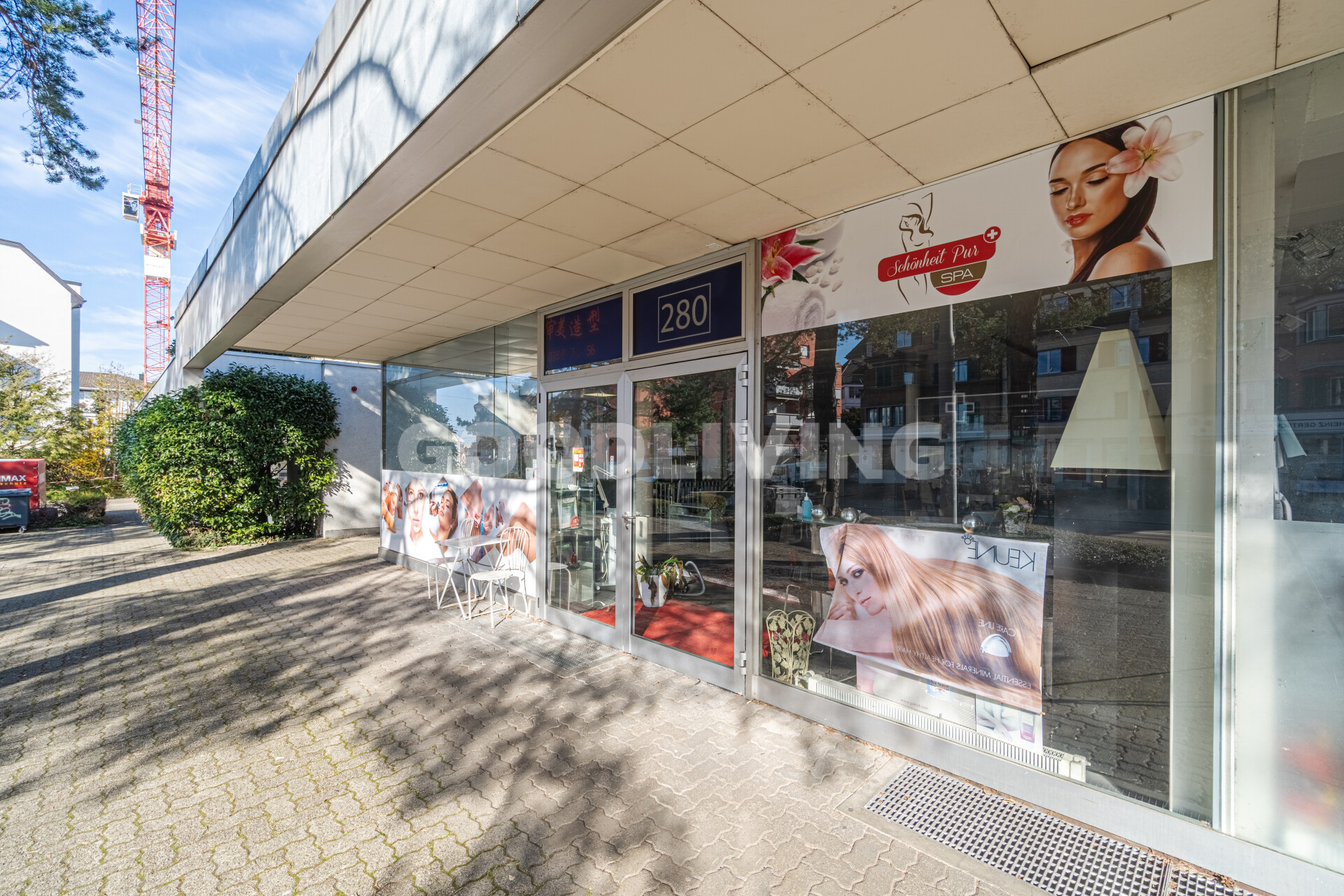 Repräsentative und grosszügige Geschäftsfläche mit direktem Zugang zum geräumigen Lagerraum im Kreis 6 sucht einen neuen Eigentümer. Sie ist zentral gelegen und eine Minute von der Tramstation Berninaplatz entfernt. Das offene Geschäftslokal hat eine Fläche von 158 m² mit grossen Fensterfronten zur Hauptstrasse gerichtet und hat eine Raumhöhe von 2.99m. Über die interne Treppe gelangt man in den grossen Lagerraum mit 139 m² Nutzfläche. Zurzeit werden beide Etagen als Beauty, SPA und Coiffeusalon genutzt.