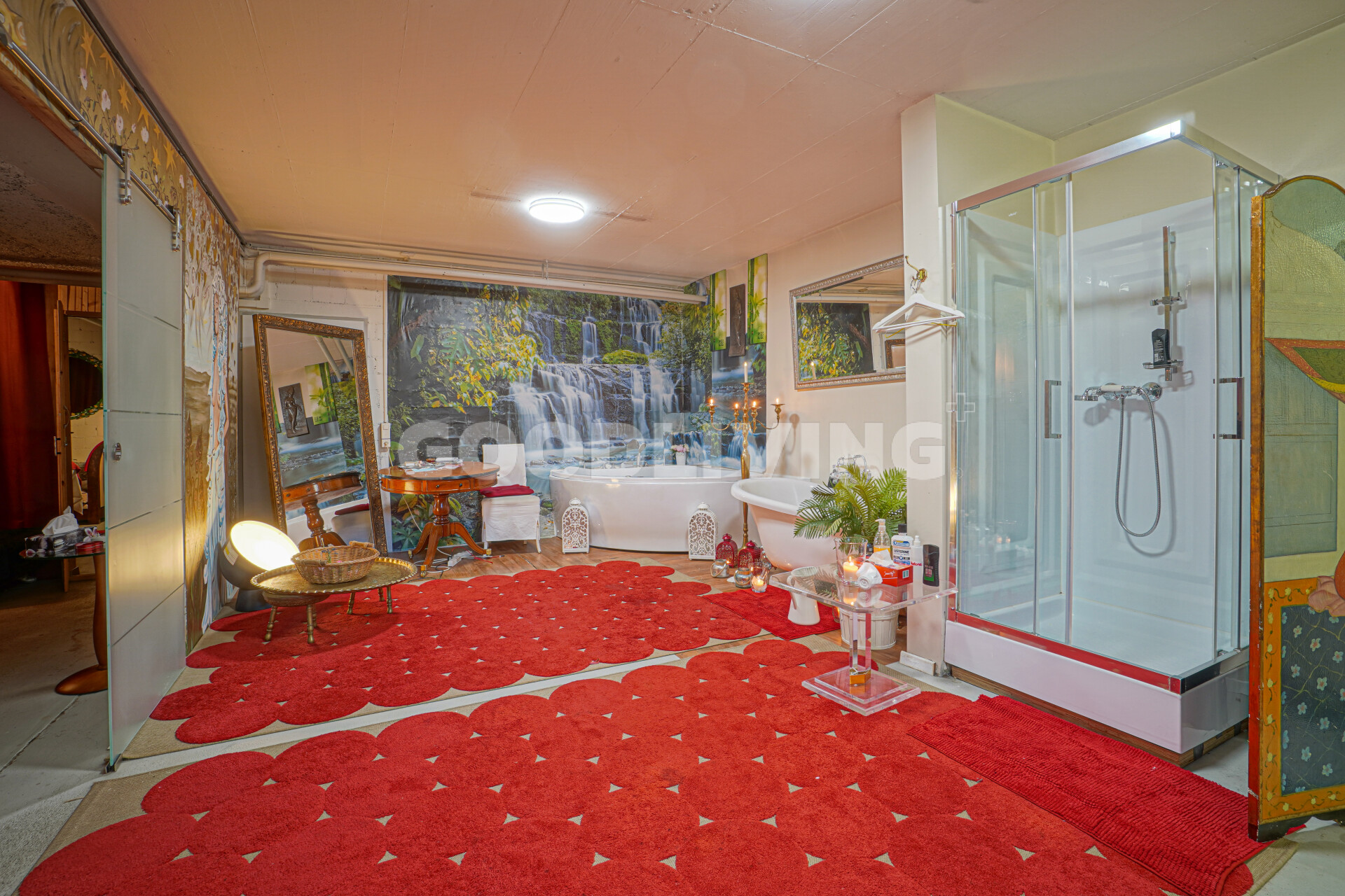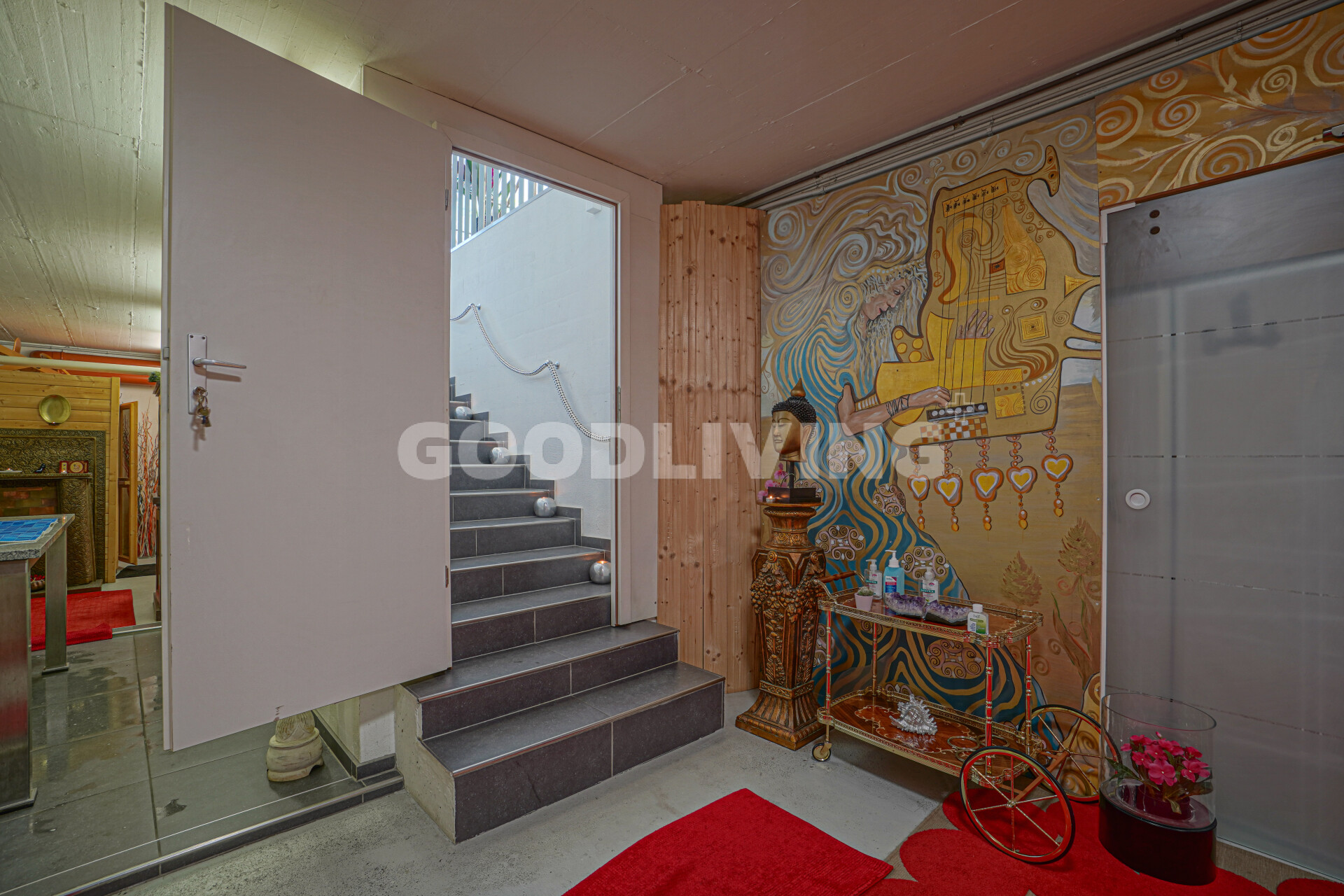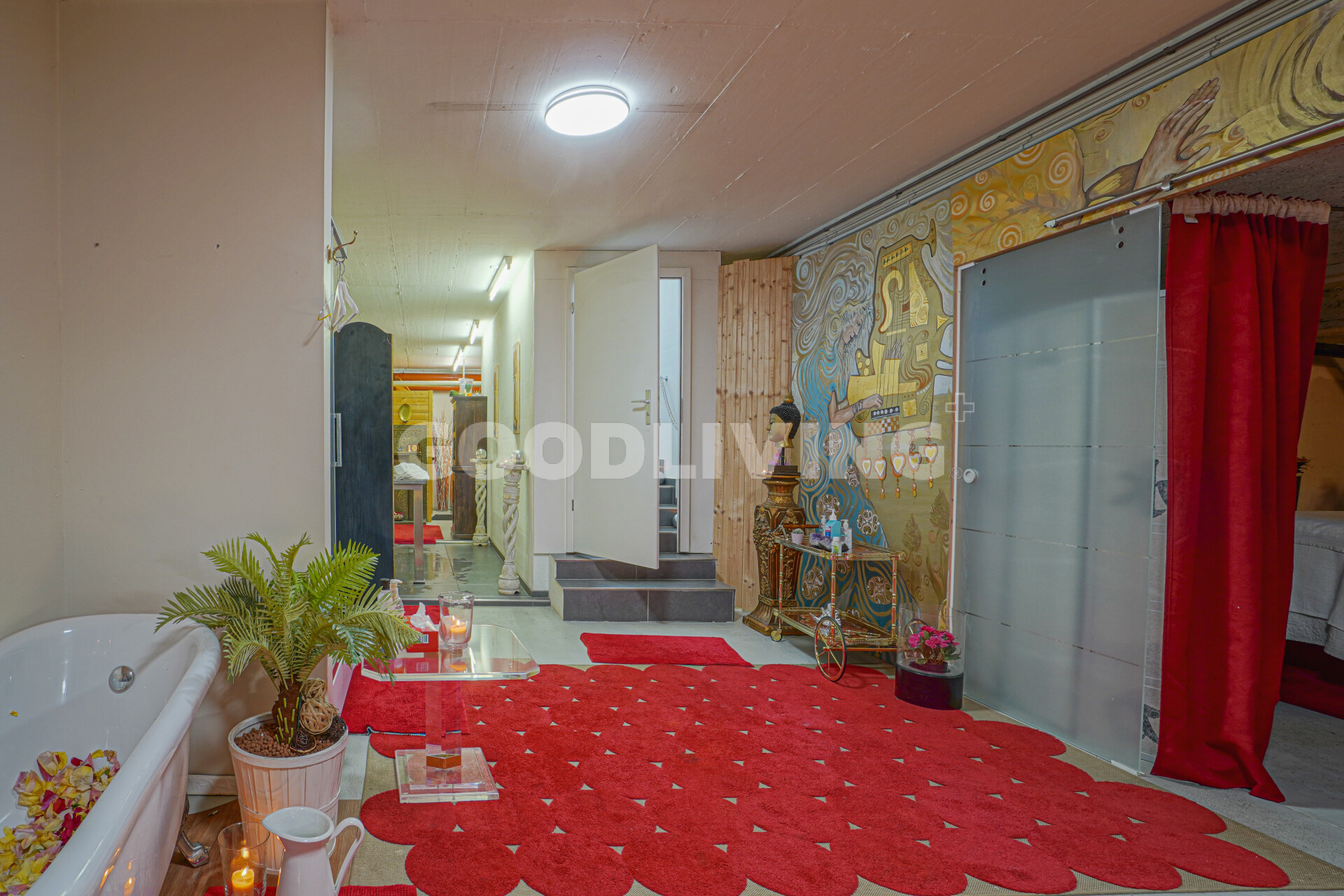 Die grosszügige Geschäftsfläche (158 m²) mit hohen Wohnräumen überzeugt mit einem offenen Grundrisskonzept, hohen Fensterfronten und ermöglicht es, sich auf zwei Etagen individuell einzurichten (aufgrund des direkten Zugangs zum Lagerraum 139 m²). Das Erdgeschoss ist zudem mit einem Aufenthaltsraum , WC und einer kleinen Küche ausgestattet. Im Untergeschoss befindet sich zusätzlich die Waschmaschine. Ein Tiefgaragenplatz für zusätzlich CHF 30'000.- runden dieses ansprechende Angebot ab.